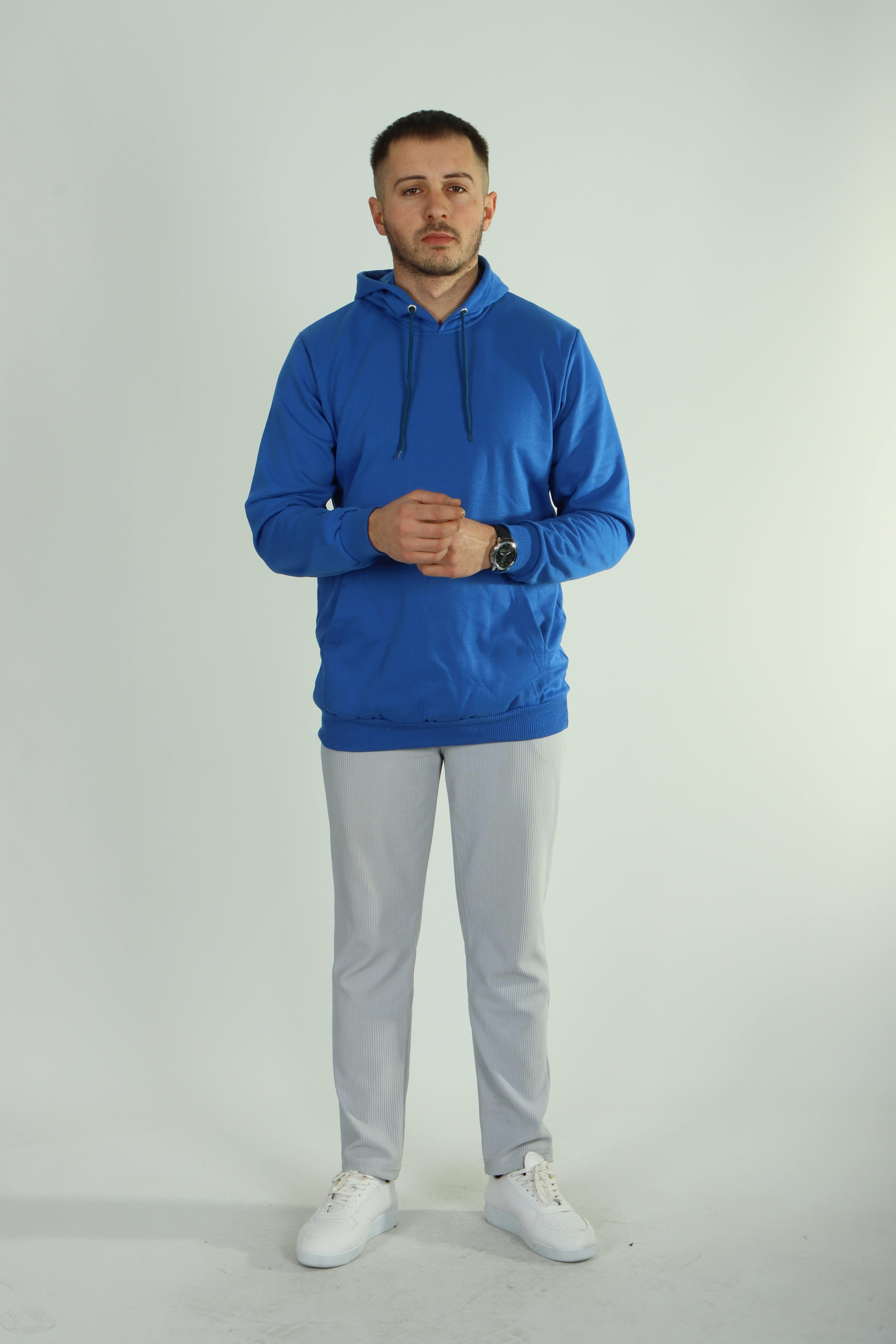 Betep 2 İp Kapşonlu Sweat Saks Mavi (SWTKPSBSZ0000113_004004XXL)