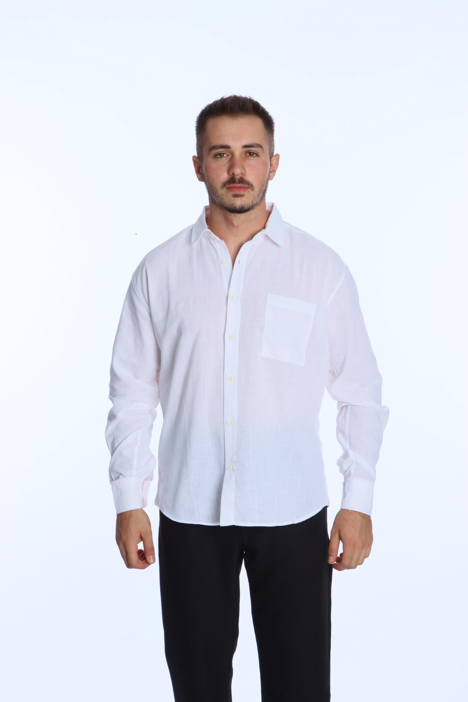 Buteks Ham Keten Tek Cepli Gömlek Beyaz (GMLVSKKTN0000107_003003M)
