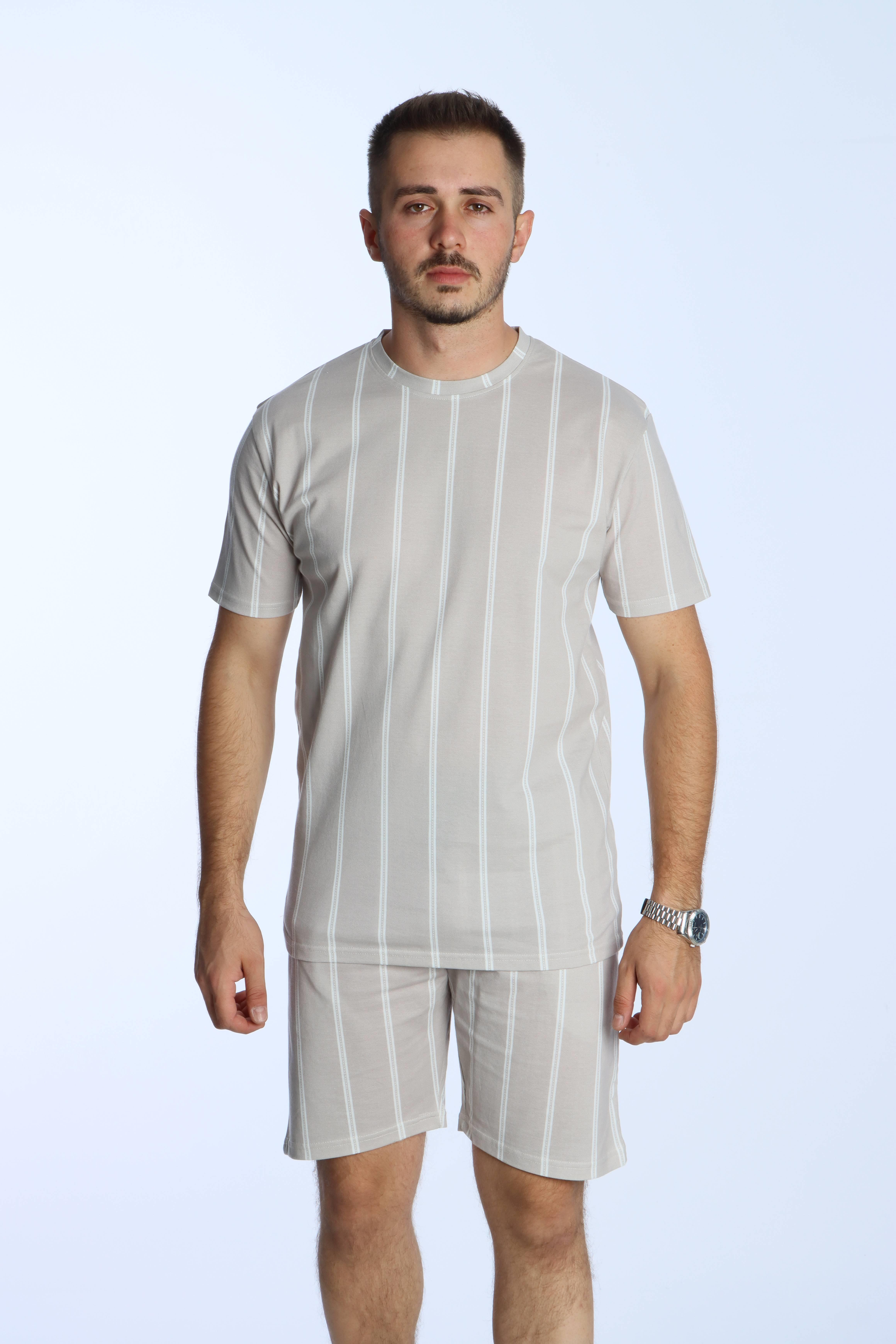 Eg38 Çizgili Şort Takım Bej (TKMSRTBSK0001005_6060L)