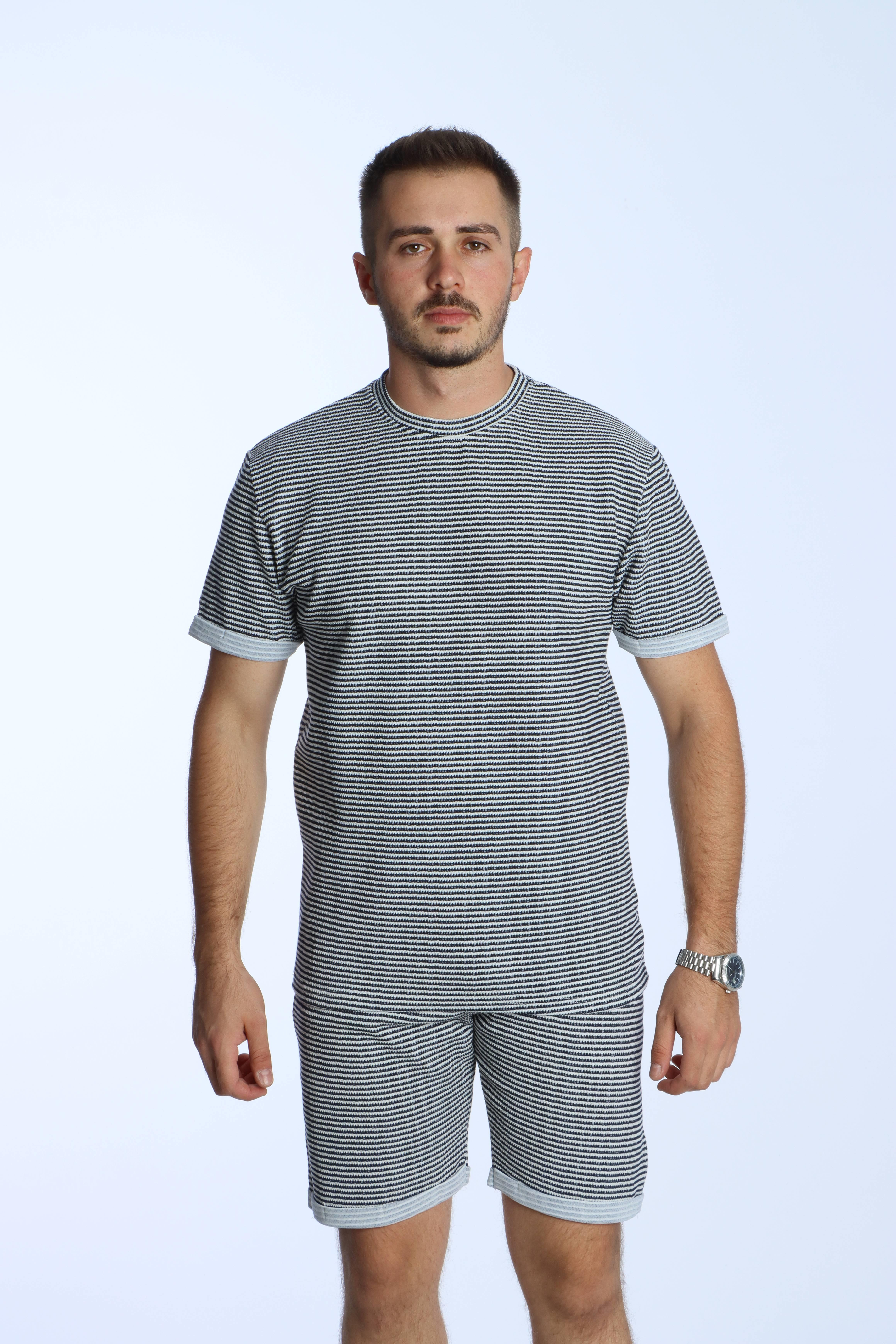 Eg38 Çizgili Şort Takım Siyah (TKMSRTBSK0001005_001001M)