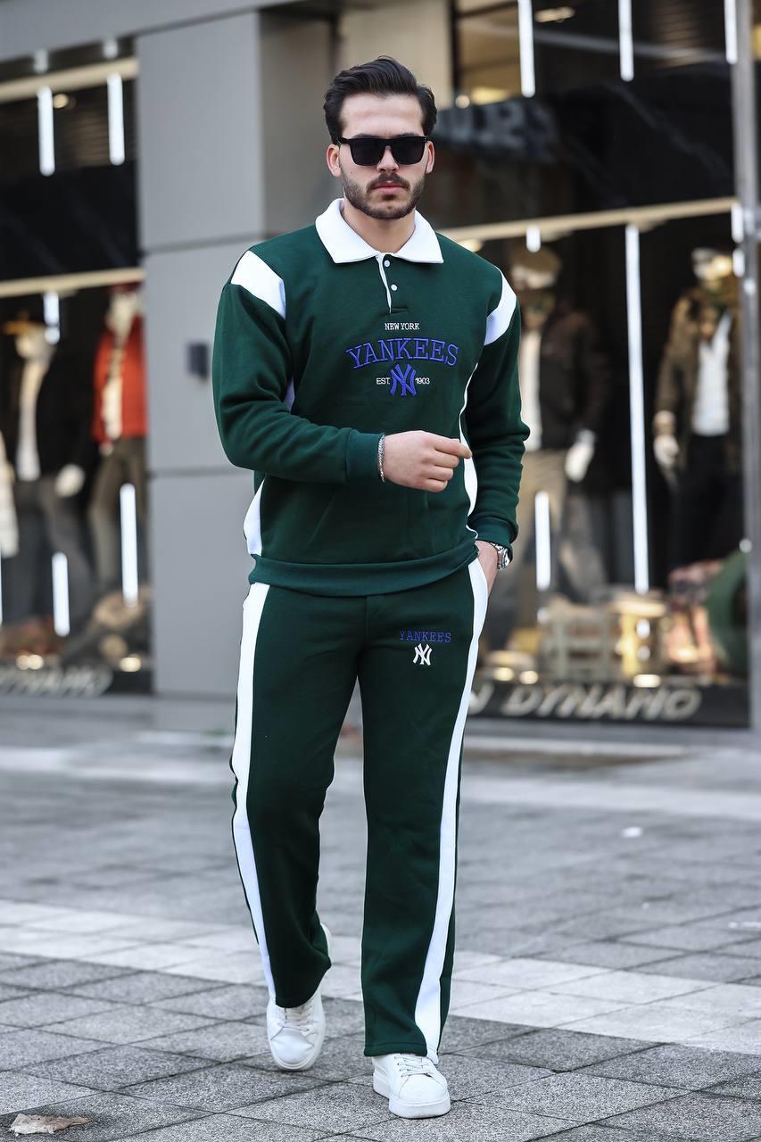 Eg38 Nakışlı 3 İplik Baggy Takım Zümrüt Yeşili
