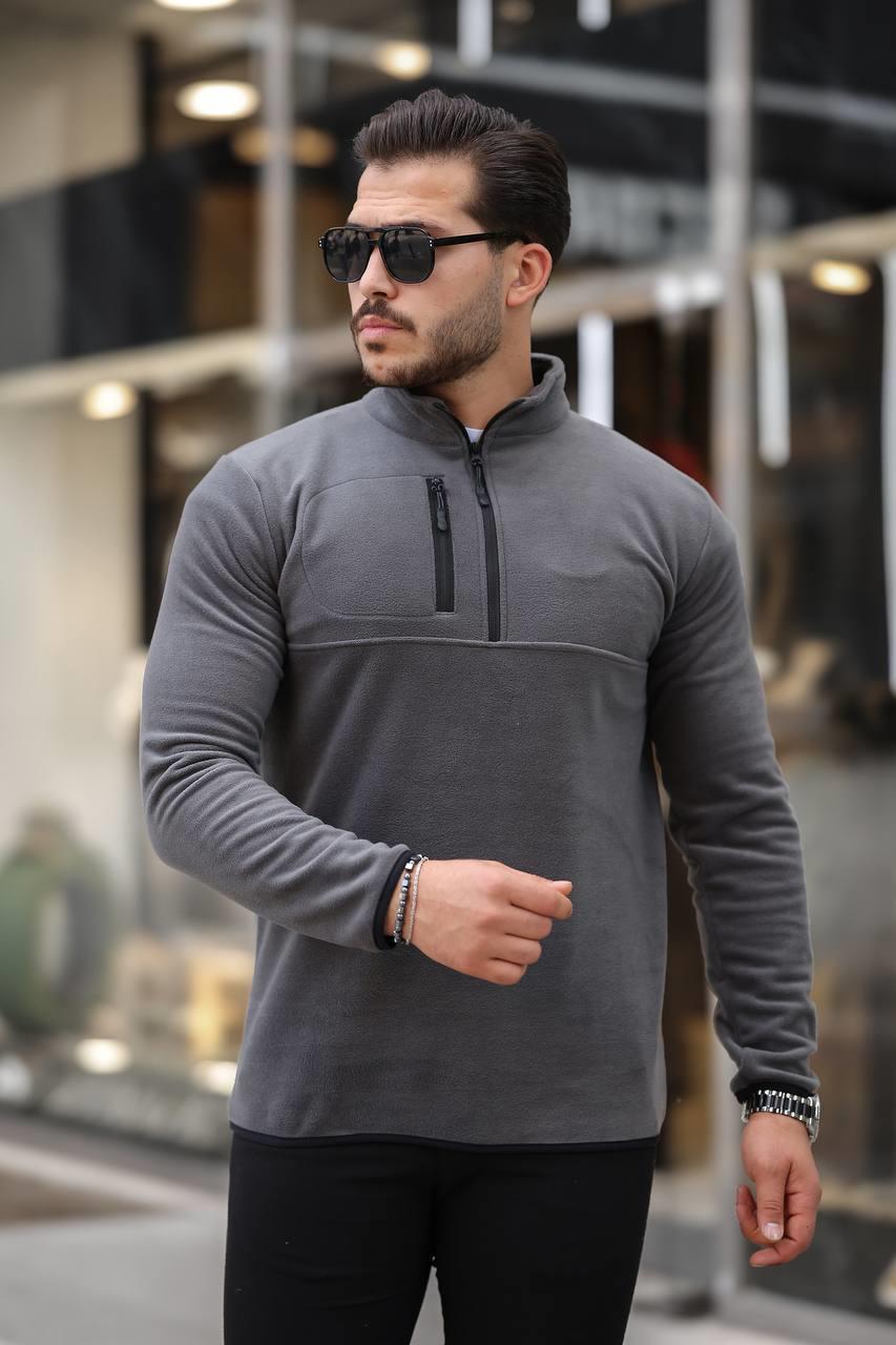 Eg38 Yarım Fermuar Polar Koyu Gri