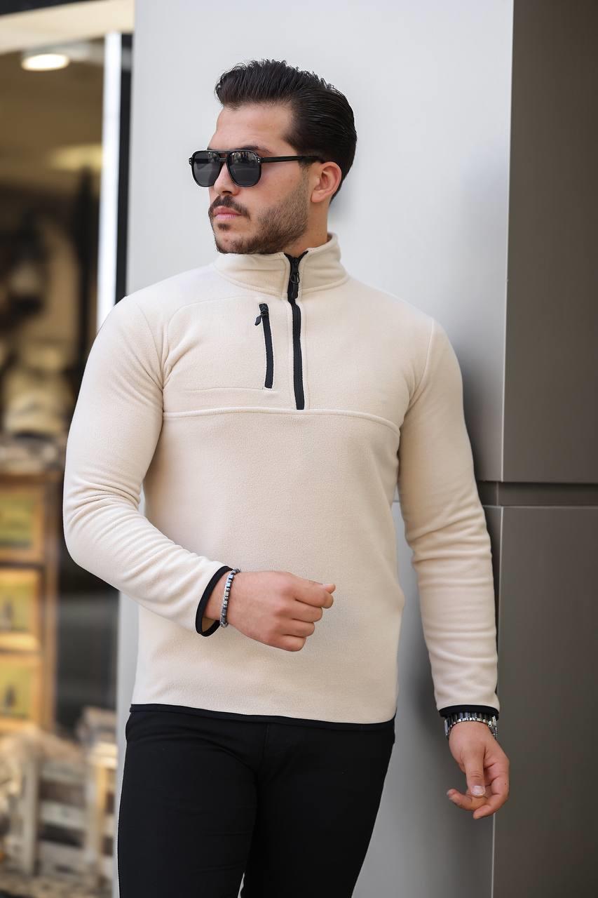 Eg38 Yarım Fermuar Polar Krem