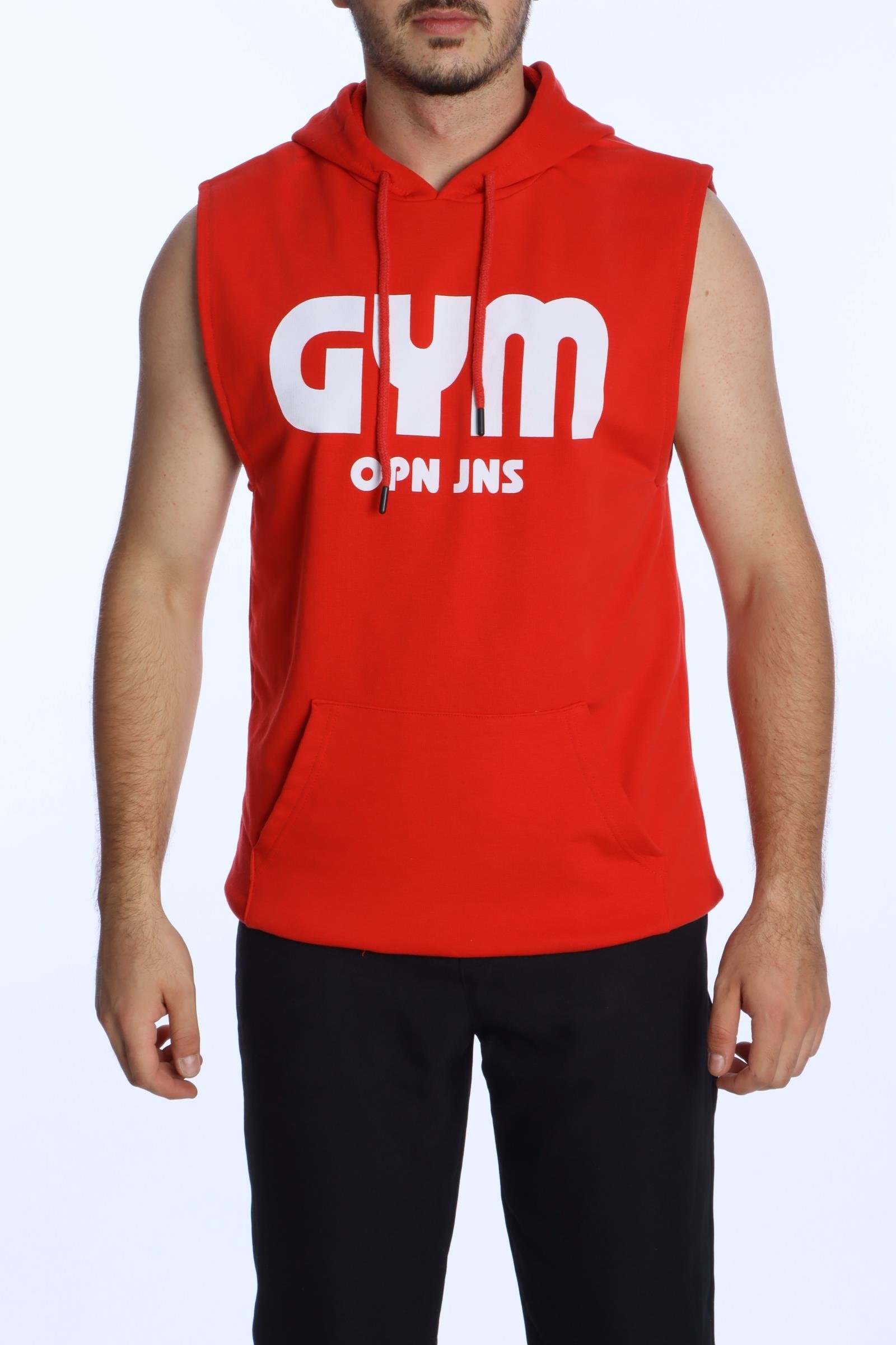 Kapşonlu Kolsuz Tişört Gym Kırmızı (TSHOVRBSK0001091_002002XL)