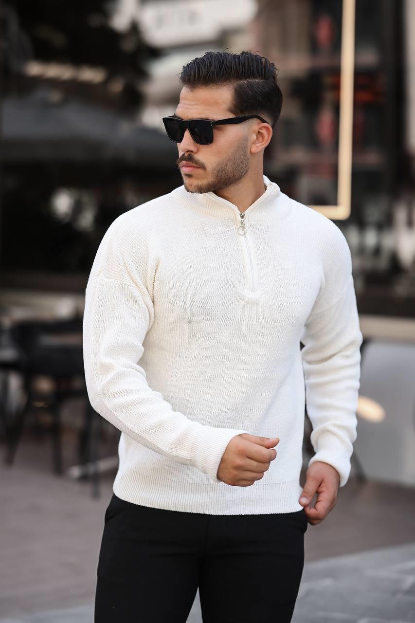 Selanik Yarım Fermuar Kazak Beyaz (KZKBGSTRK0000102_003003L)
