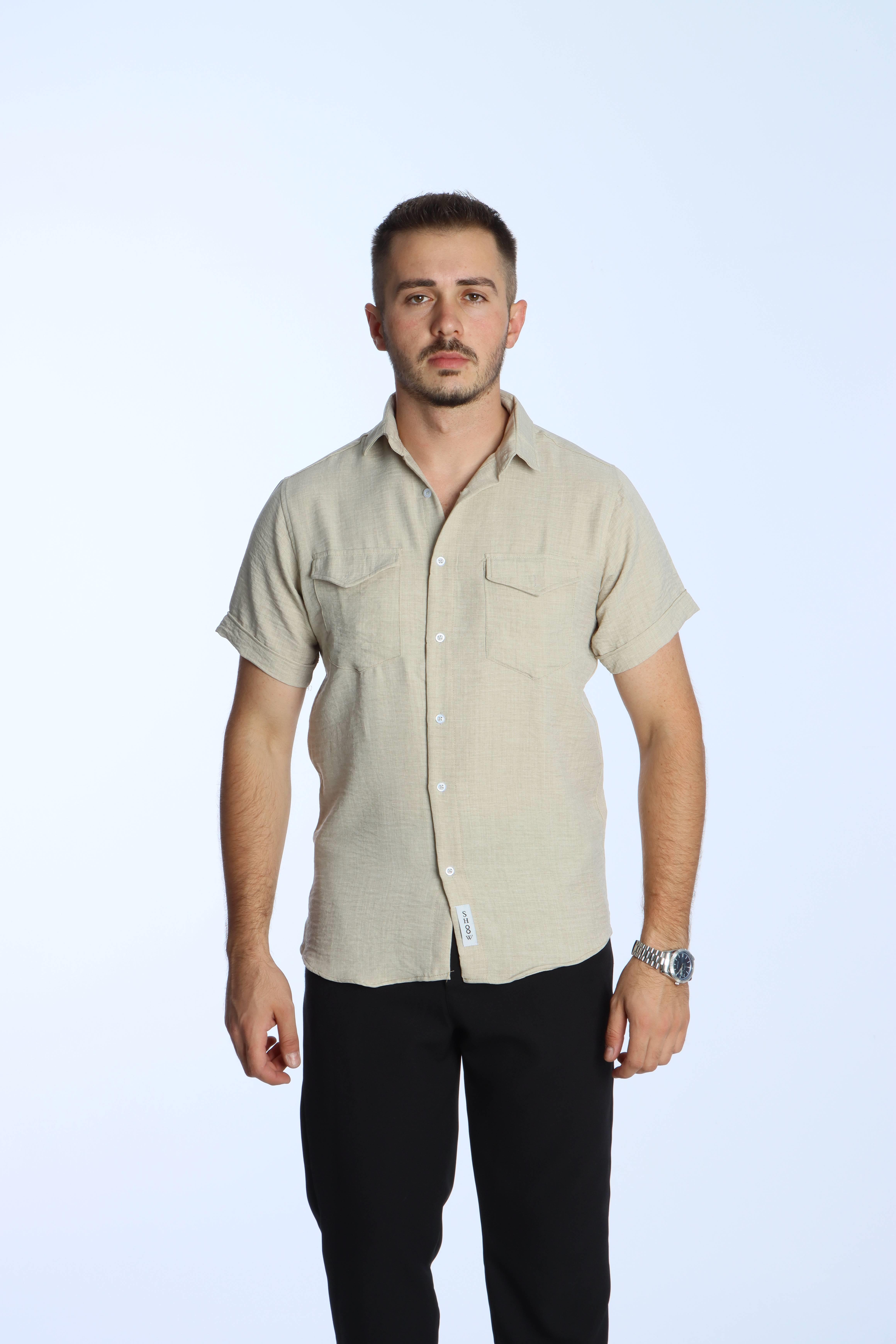 Show Çift Cep Keten Gömlek Bej (GMLVSKKTN0001003_6060L)