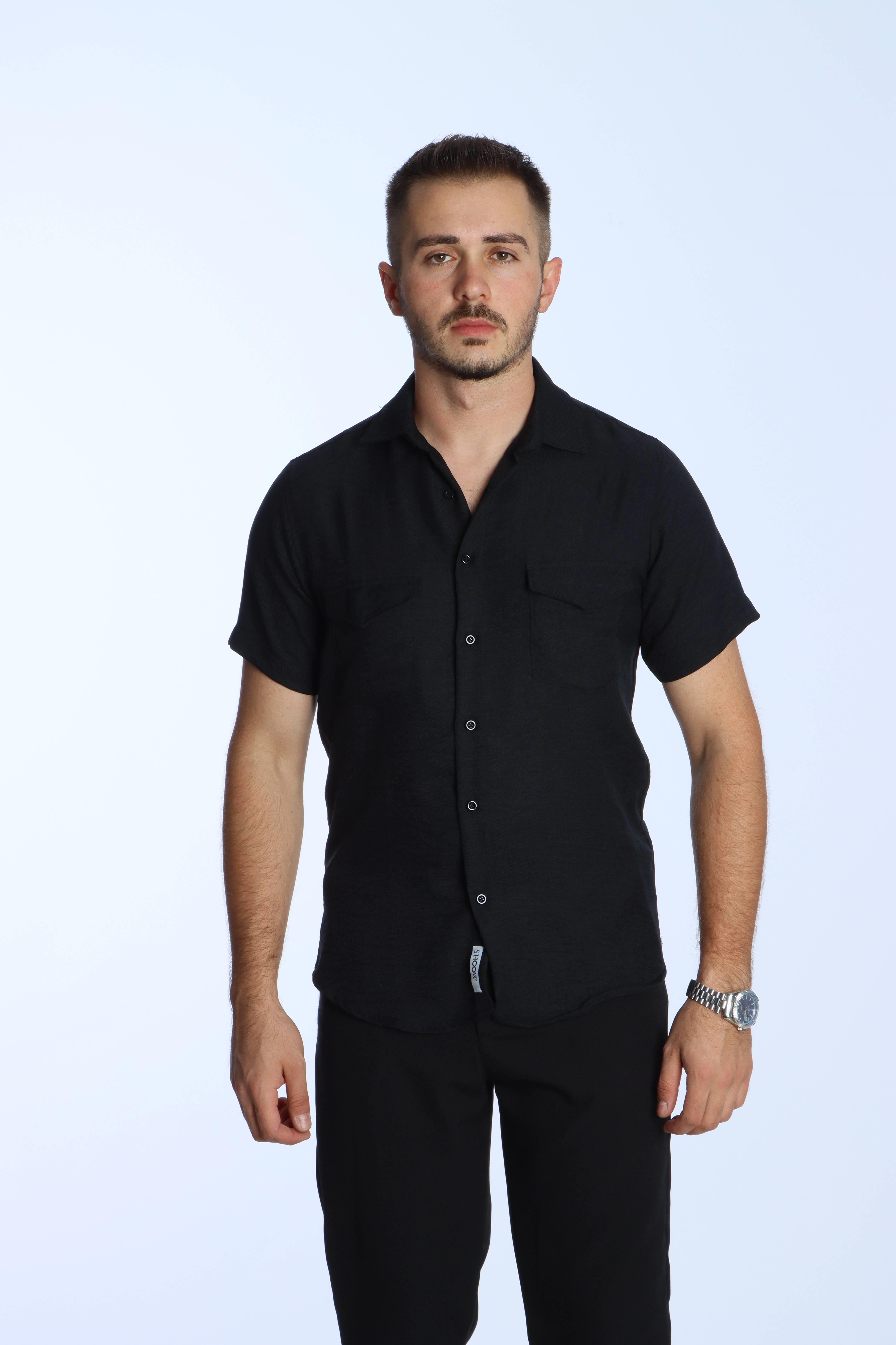 Show Çift Cep Keten Gömlek Siyah (GMLVSKKTN0001003_001001M)