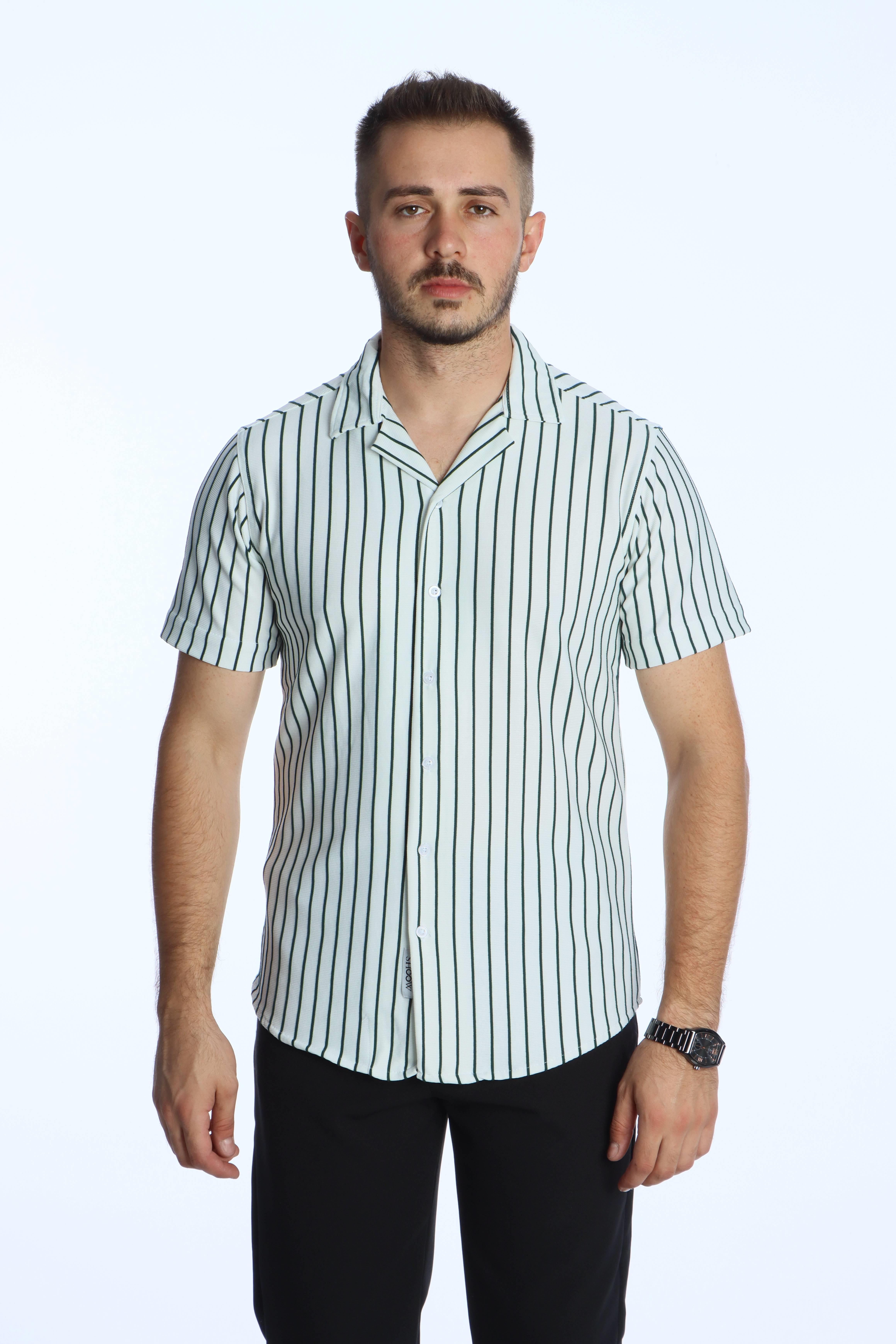 Show Çizgili Kısa Kol Gömlek Zümrüt Yeşili